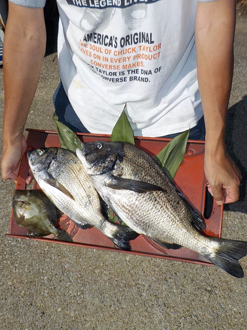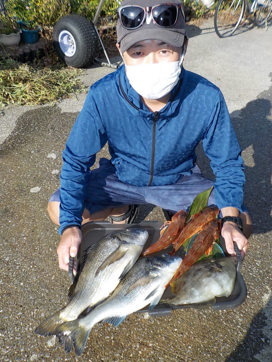 にしもと様 クロダイ2匹(42cm )、カワハギ1匹(29cm )、ホウボウ3匹(35cm )